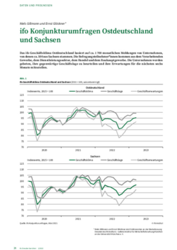 Das ifo Geschäftsklima Ostdeutschland basiert auf ca. 1 700 monatlichen Meldungen von Unternehmen, von denen ca. 500 aus Sachsen stammen. Die Befragungsteilnehmer*innen kommen aus dem Verarbeitenden Gewerbe, dem Dienstleistungssektor, dem Handel und dem Bauhauptgewerbe. Die Unternehmen werden gebeten, ihre gegenwärtige Geschäftslage zu beurteilen und ihre Erwartungen für die nächsten sechs Monate mitzuteilen.